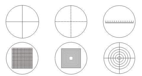 Reticles are clear discs marked with a variety of crossline, scale or patterns including grids, homocentric circles,homocentric Squres.