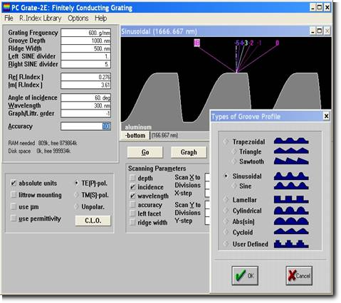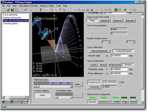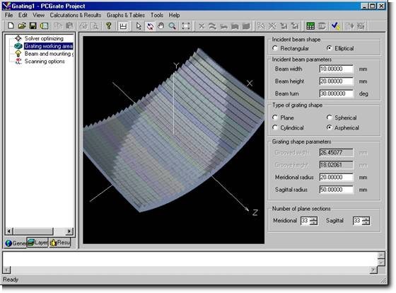 PCGrate®-S(X) : Diffraction Grating Software, designed for exact efficiency modeling of relief & phase diffraction gratings and rough mirrors, combines the brilliant performance of the earlier implementations of PCGrates with the modern Graphical User Interface with 3-D & 2-D Open GL plots and expands noticeably the set of supported features including two different solvers, paralleling, and the capability to calculate data from the command line using XML-format input/output files.